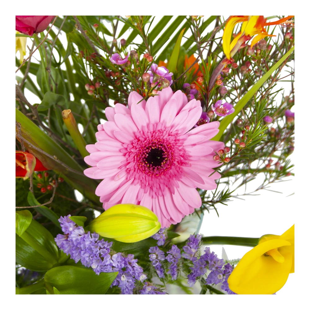 De combinatie van vrolijke en frisse bloemen geven het veldboeket een gezellige uitstraling. Met dit boeket haal je de lente in huis. Bovendien is dit boeket geschikt voor verschillende gelegenheden, zoals feliciteren en bedanken of verstuur zomaar dit prachtige handgebonden boeket en verras de ontvanger! * Exclusief accessoires en vaas